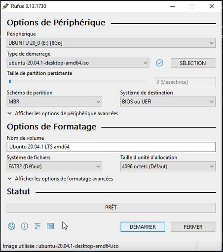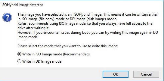 Keep the first option selected :” Write in ISO Image mode (Recommanded)“