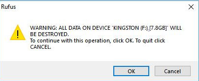 This warns you that your USB drive will be completely formatted. Click Ok if you are sure to continue.